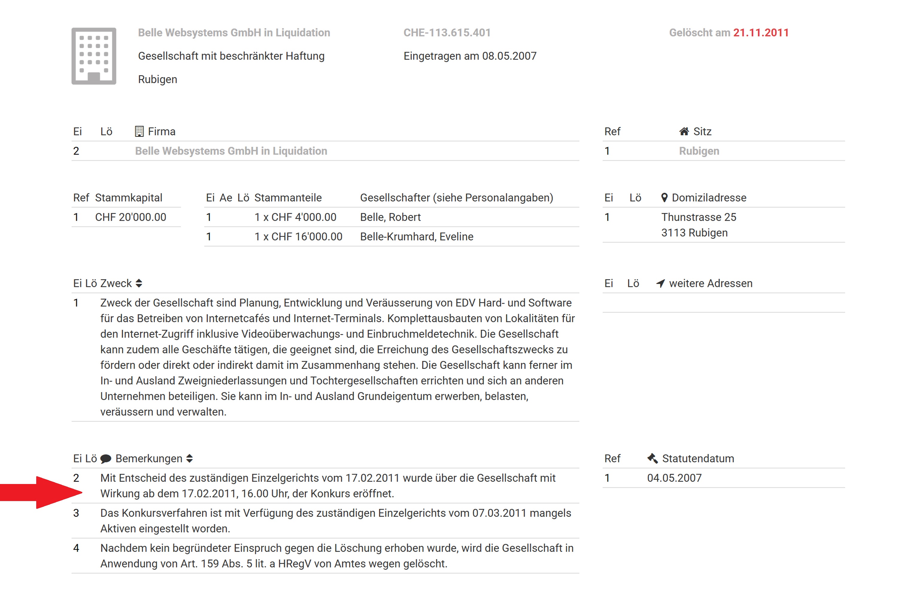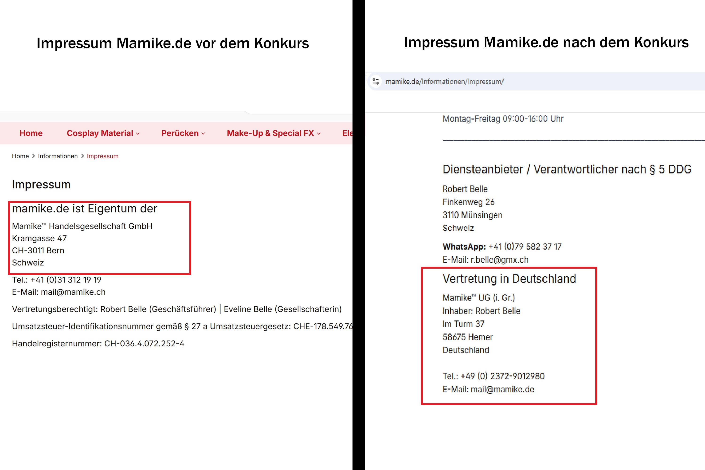 Nun wurde (endlich) der Konkurs eröffnet, und man hat für kurze Zeit gedacht, dass nun Ruhe herrscht. Dem ist nicht so, denn Robert Belle hat Mamike einfach nach Deutschland verschoben.