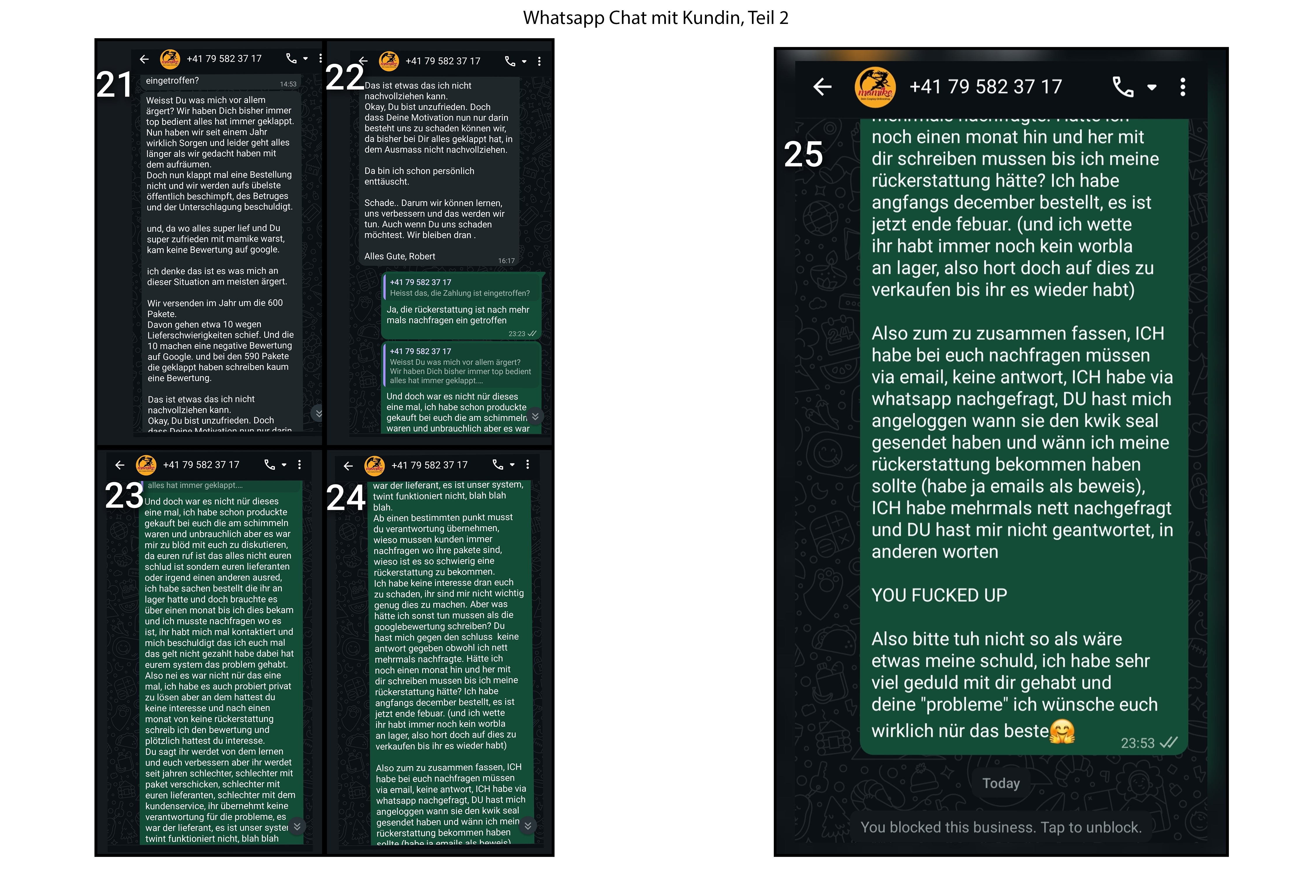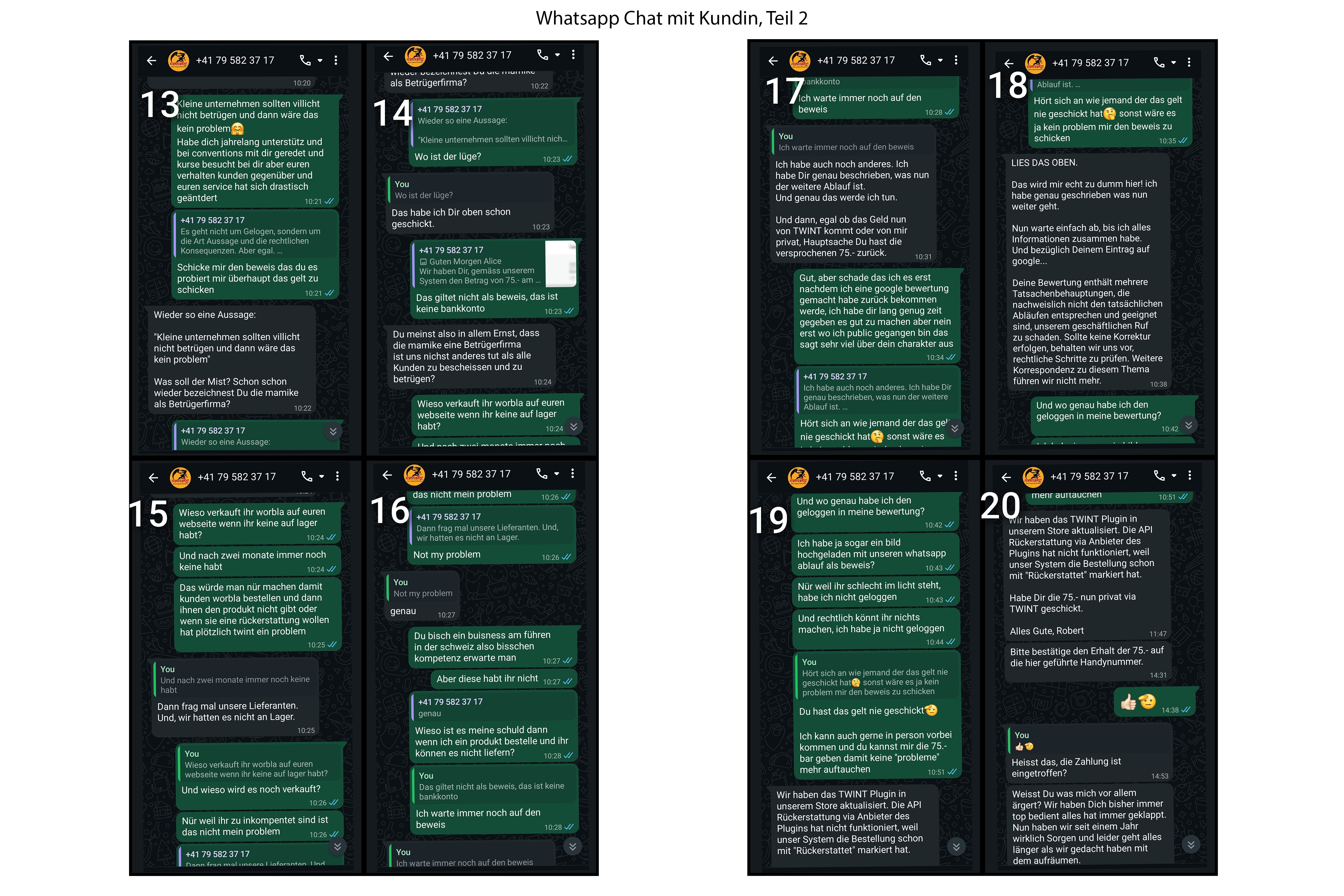 Kunden haben ihre Bestellungen nie oder erst Monate später erhalten, Rückerstattungen wurden erst auf Drohung mit Gericht zurückgezahlt, diverse private Gläubiger warten bis heute auf ihr Geld.