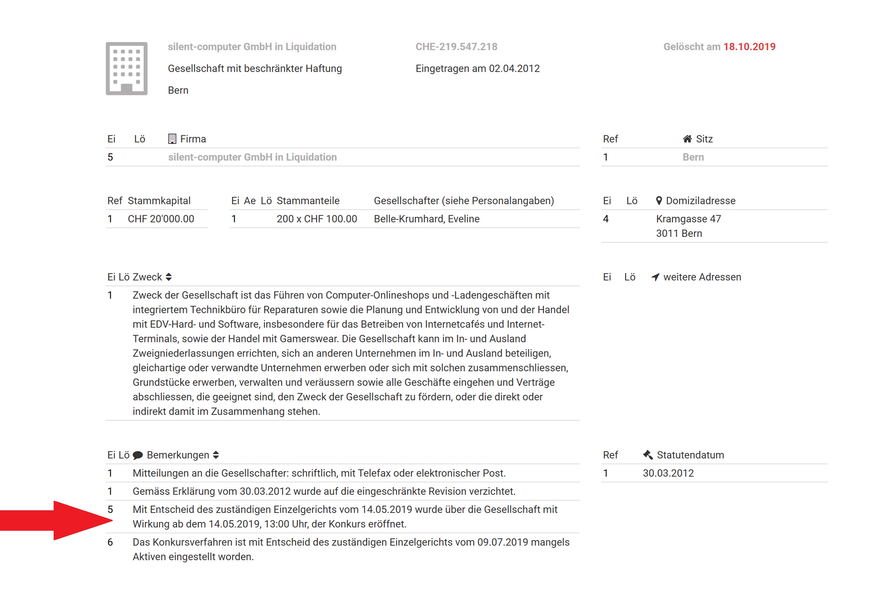 2019 wurde diese dann in den Konkurs gestellt und geschlossen.